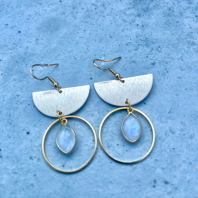 Beaded Earrings - Feather in a Hoop (Brown and Marbled Blue)